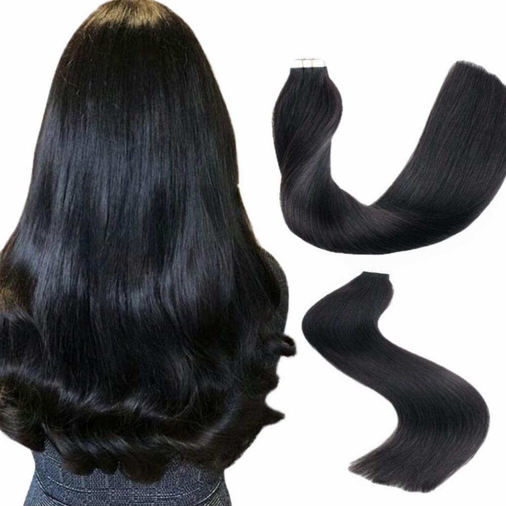 Amazon Com Ymeyme Jet Black Tape In Hair Extensions Human Hair 20 Inches Beauty Personal Care